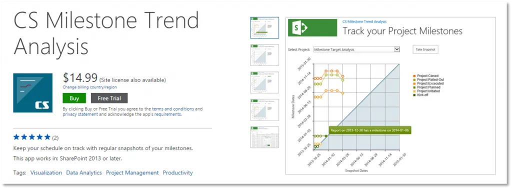 Direct link: https://store.office.com/cs-milestone-trend-analysis-WA102963787.aspx