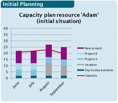 Let’s look at the resulting planning. June and July are fine. First issues will rise in August and September, when the resource is on vacation. We are facing an over-allocation of ~20%.